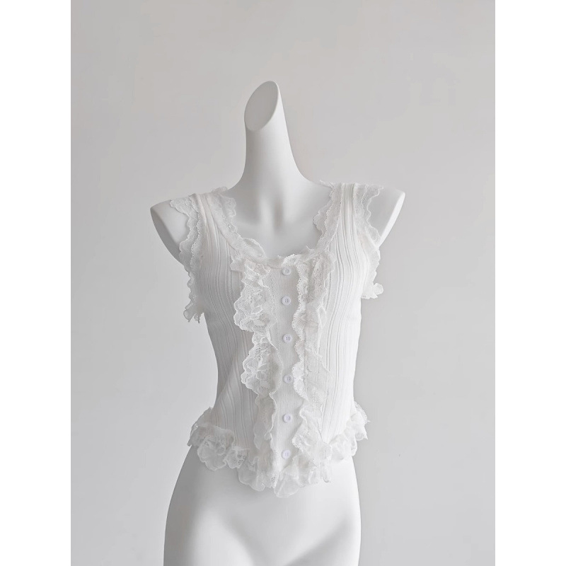 フランスのレース中空刺繍ジャカード美しい小さなキャミソール女性の夏の新しいルーズでシックなノースリーブトップ