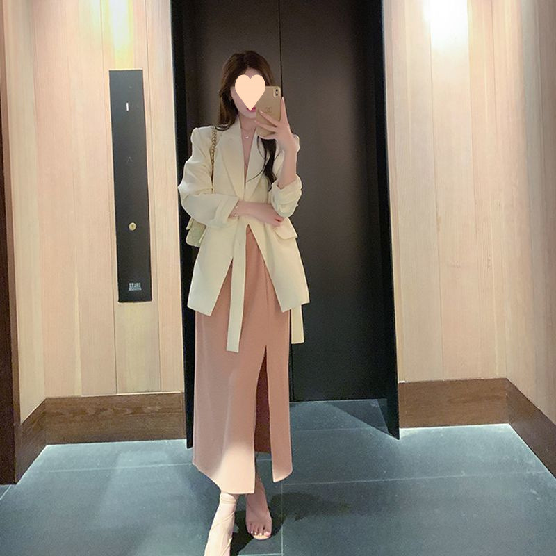 ファッショナブルな女性スーツ女性のための 2025 春の新しいハイエンドスーツジャケットサスペンダードレス 2 点セット
