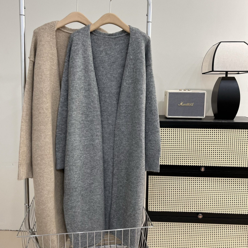 新しい優しいロングセーターカーディガンジャケット2025春ルーズトップ女性ニッチニットアウターデザイン