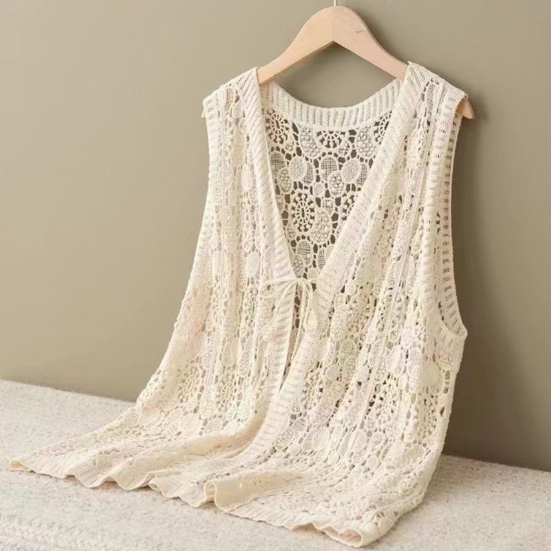 新しい中国風の人気のインターネットセレブ大きいサイズ中空レイヤードベスト刺繍ノースリーブチョッキカーディガンレトロ中空