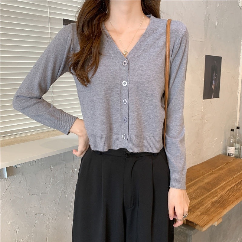 ショートコートレディーストレンド春秋万能襟長袖セータートップ初秋薄手アウターカーディガンセーター