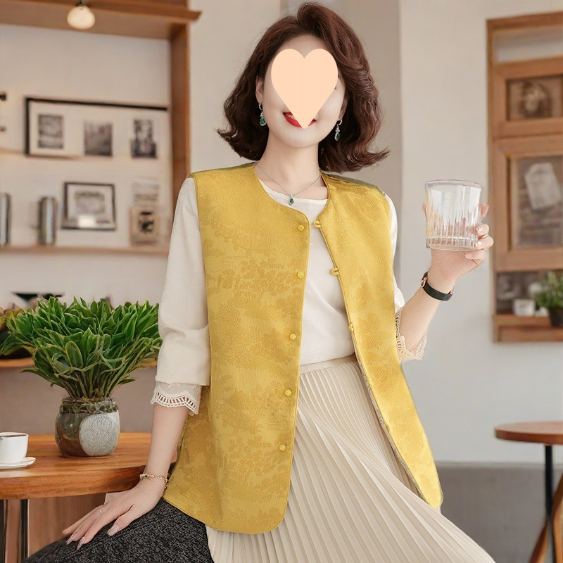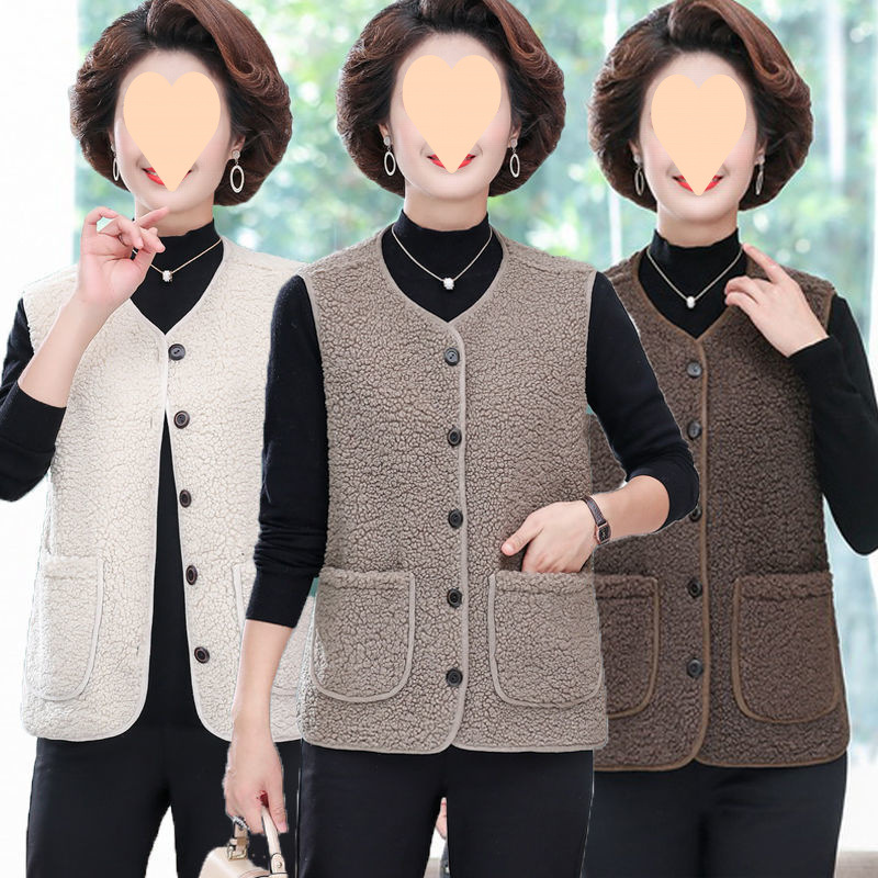 ラムウールオールインワンベスト中高年女性トップス春秋新作ベスト中年ママベストジャケット
