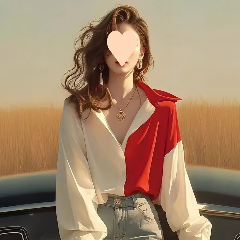 赤と白のコントラストラペル長袖シャツ女性用 2025 新作初秋韓国風雰囲気クールレイジートップ
