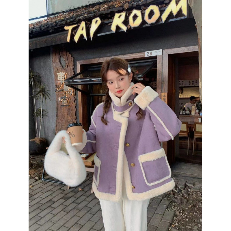 2025 新しいオールインワン女性のハイエンドベルベット厚みのあるショート韓国スタイルの緩い暖かいオートバイの服綿の冬服