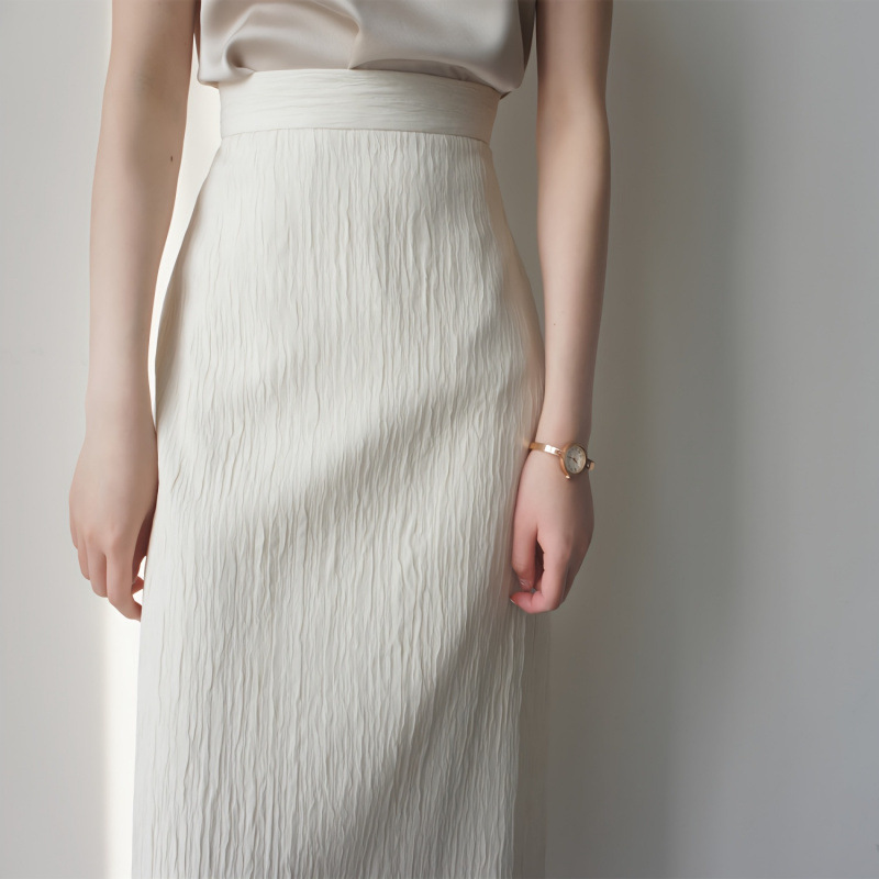 2025 春夏の新スタイルの高品質テクスチャードハイウエストベージュスカート女性のファッショナブルで多用途な縦縞スカートニッチ