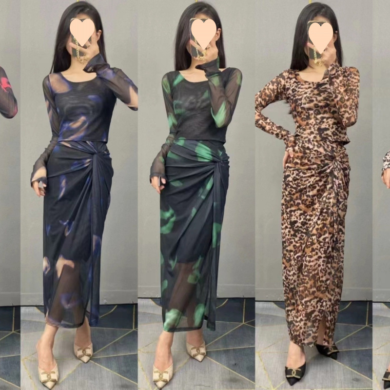 春の新作レディースセクシー長袖+スリットハイウエストスカート2点セットロング高級