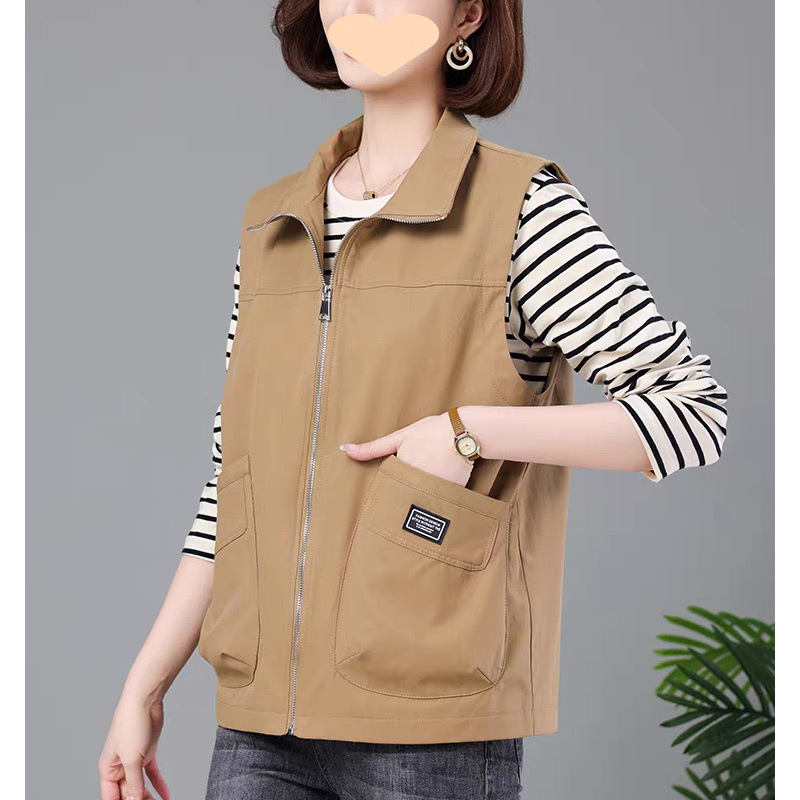 春と秋のショートラペルベストレディースベスト大きいサイズルーズカジュアルベスト中高年母親薄手ベストジャケット
