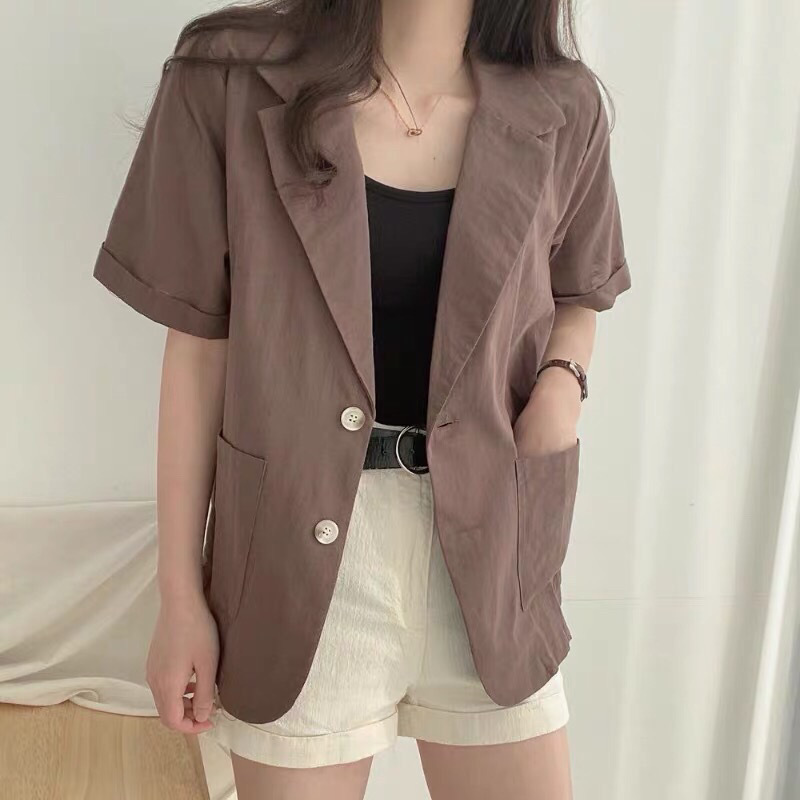 春夏フレンチニッチ2つボタンルーズスリム多用途半袖コットンとリネンラペルスーツジャケット女性用