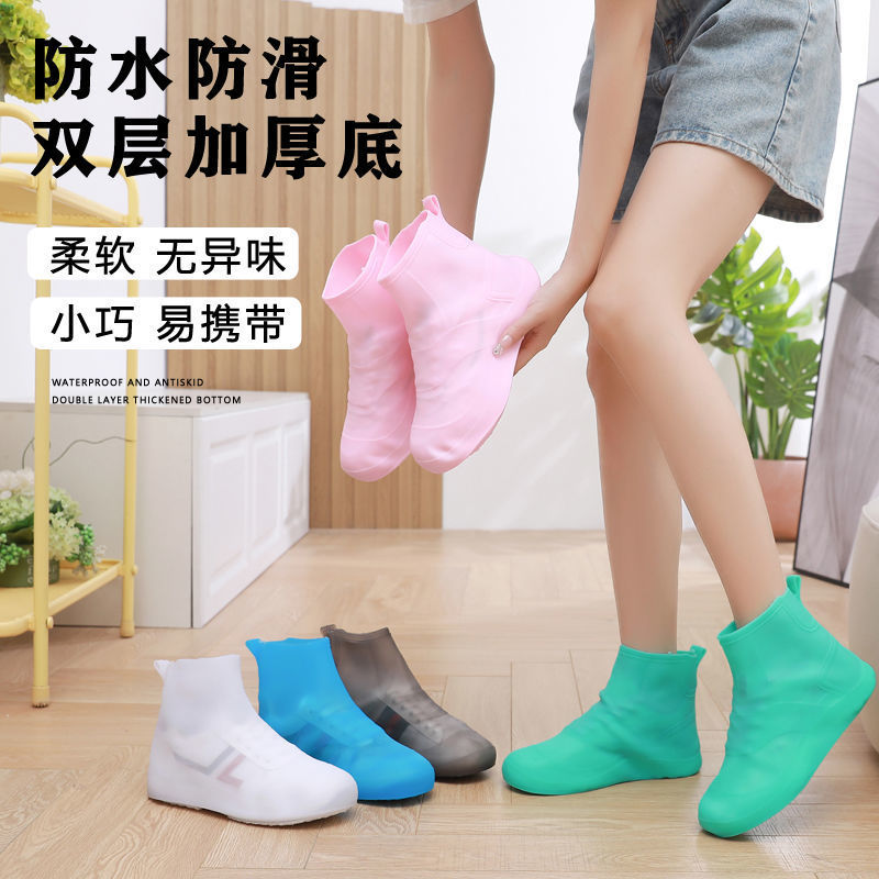 男性と女性用の防雨靴カバー、防水靴カバー、厚みのある耐摩耗性二重底、滑り止め、一体成型、ポータブル、高弾性、着脱が簡単
