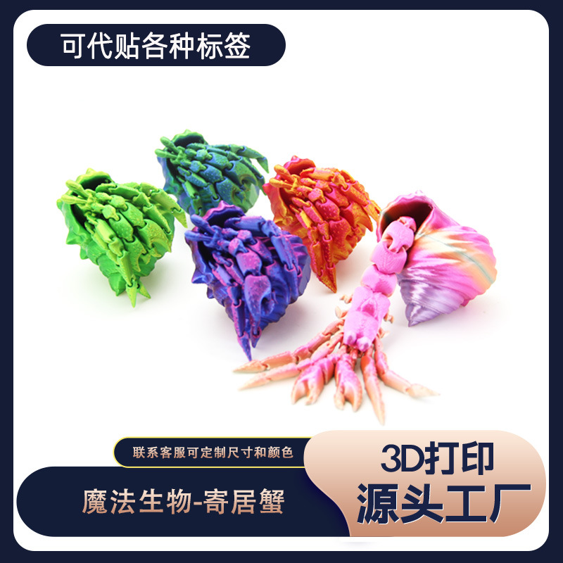3Dプリントによる越境販売の人気商品、寄居蟹の海中生物、多色関節可動・伸縮可能な子供向けおもちゃ