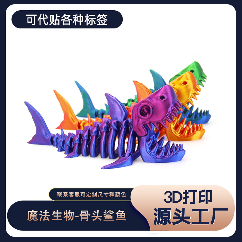 3Dプリントによる人気商品、関節可動、口が開くサメの骨格模型、子供のおもちゃ、屋台の売れ筋商品、車載装飾品