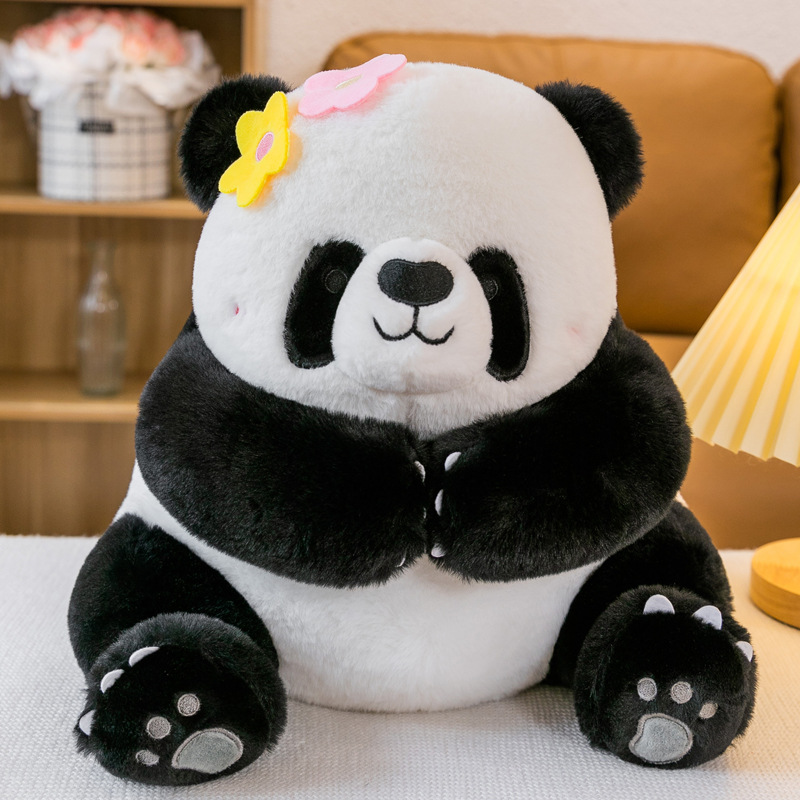 起爆パンダの花のぬいぐるみかわいいパンダの子供の誕生日プレゼントのベッドで寝て枕を抱く