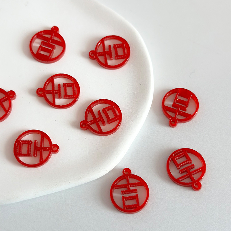 中国風赤喜字アクリルペンダントdiyアクセサリー耳飾りヘアピン手作り材料diyアクセサリー