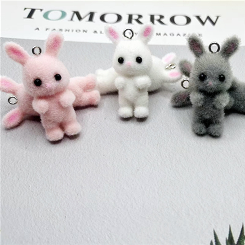 漫画植毛立体樹脂部品猫熊ウサギストラップdiyアクセサリー手作り材料卸売り