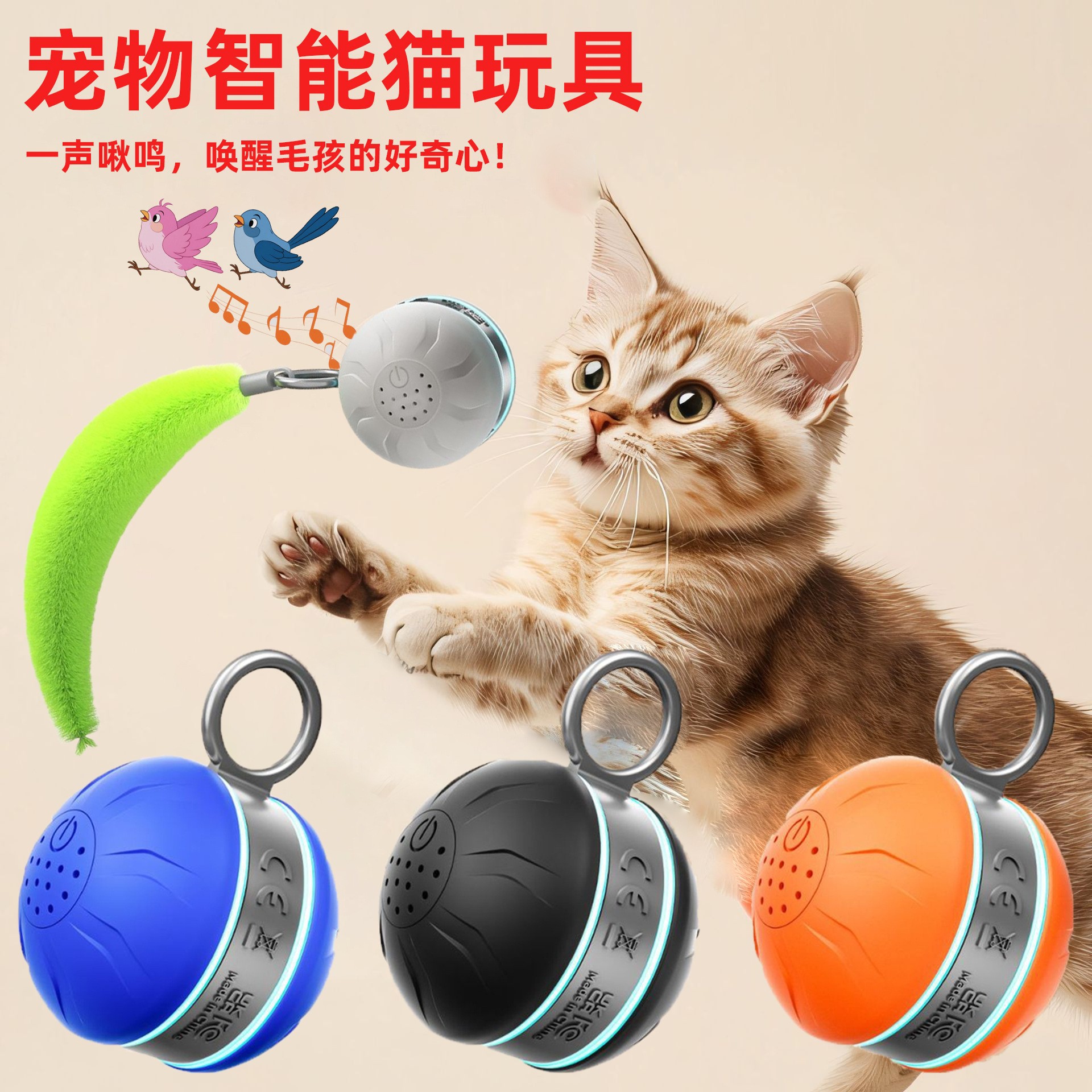 国境を越えたペットの新しい猫のおもちゃボール、自ら楽しんで退屈を和らげる猫ボール、噛みつきにくい猫の追跡おもちゃ