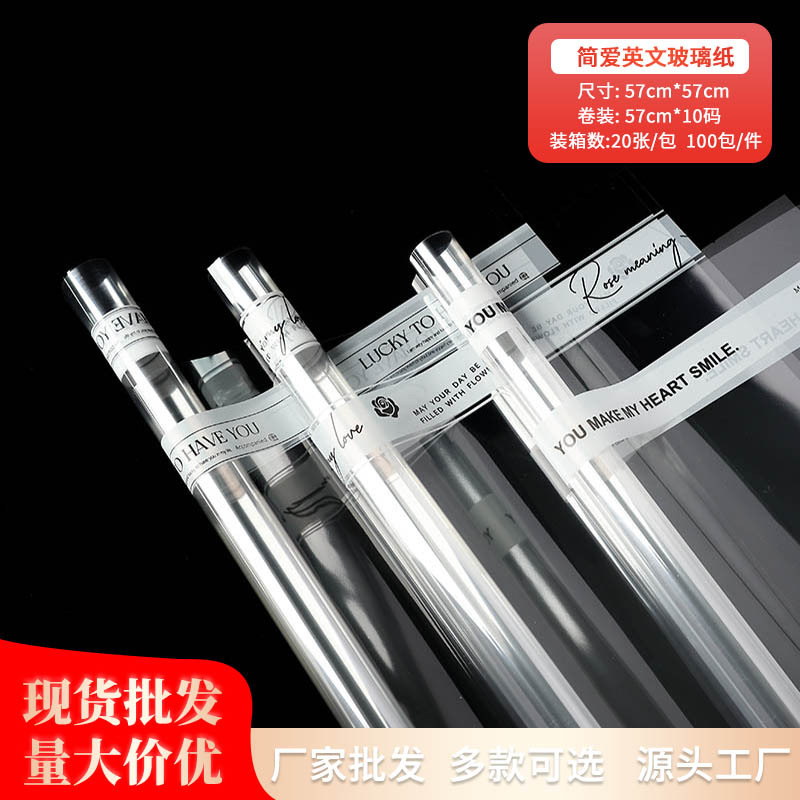 透明英語セロハン義烏工場現物卸売り花芸花束防水包装紙包花紙材料