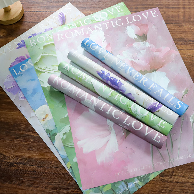 甘い心の花は煕の夢の花園の芸術の油絵の風の包装の紙の花束の花の芸の花の包装の卸売りのクラフト紙にあふれます。