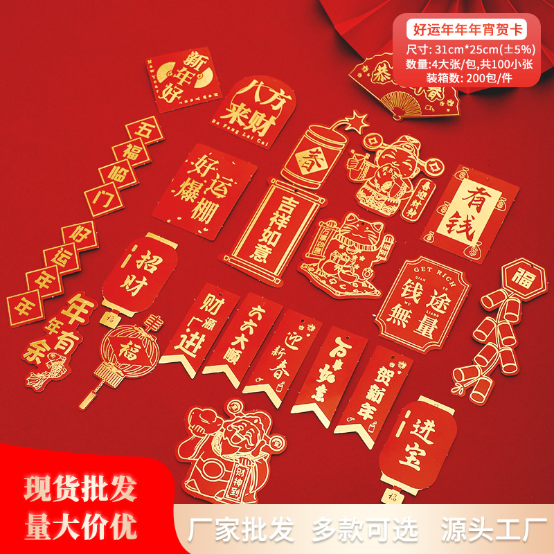 新年旧正月カードスポット卸売り年夜食花福桶箔押し装飾赤いお祝い吊りカード鉢植え掛けカード