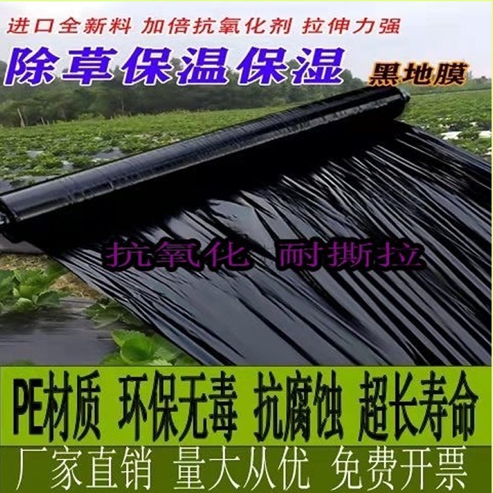 野菜栽培専用の地膜農業用栽培は老化防止の黒い地膜プラスチックフィルムを厚くして保温保湿防止をします。