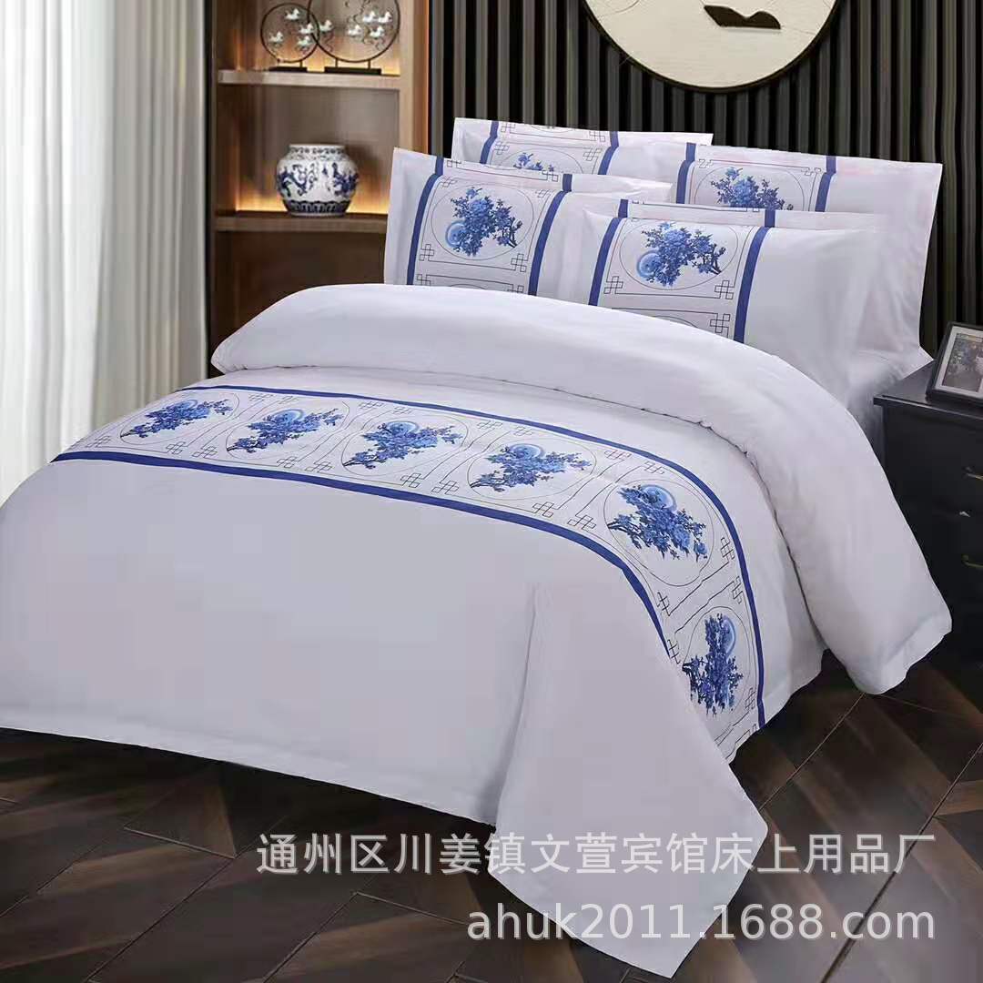ホテル布草メーカー卸売りホテル綿白色シーツ生地民宿4点セットベッド用品綿布