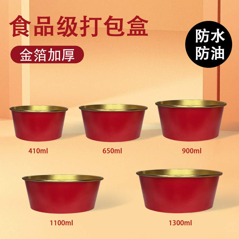 赤い使い捨て包装箱ランチボウル商業アルミホイルボウルテイクアウトランチボックス蓋付きラウンドランチボックス