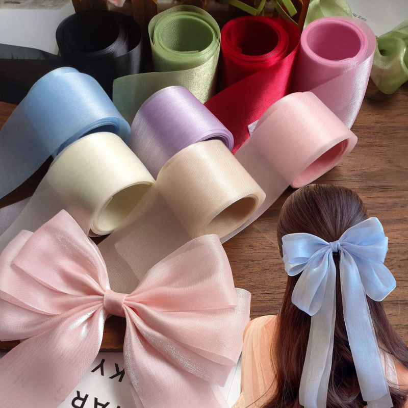 4 センチメートル幅真珠光沢のある糸リボン diy 手作りヘアアクセサリー材料アクセサリーグリッター大きな弓ヘアピンリボン