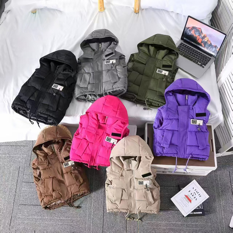 子供用ダウンコットンベスト2025秋冬男の子と女の子のフード付きベスト厚くて暖かい子供用アウターベスト