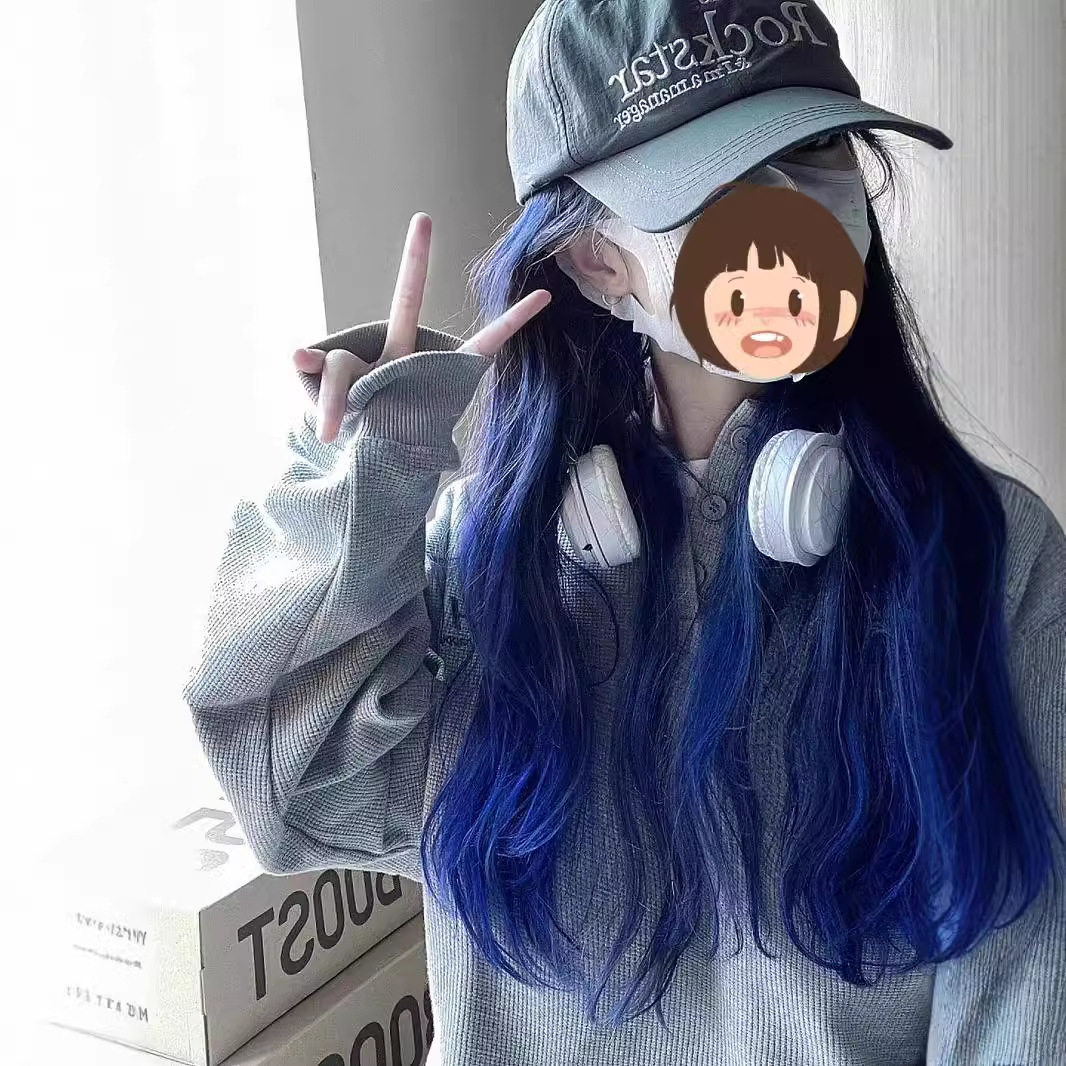 クラインブルーのかつらの女性の夏の薄いタイプの長いカールのファッションの自然なシミュレーションの髪の跡のないステルスの全体のカバー式