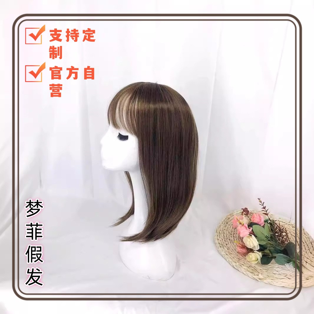 Mengfeiの新しいフルヘッドウィッグ、女性用ミディアム分け目ショートストレートヘア、模擬ヨーロッパとアメリカのクロスボーダーウィッグ工場卸売