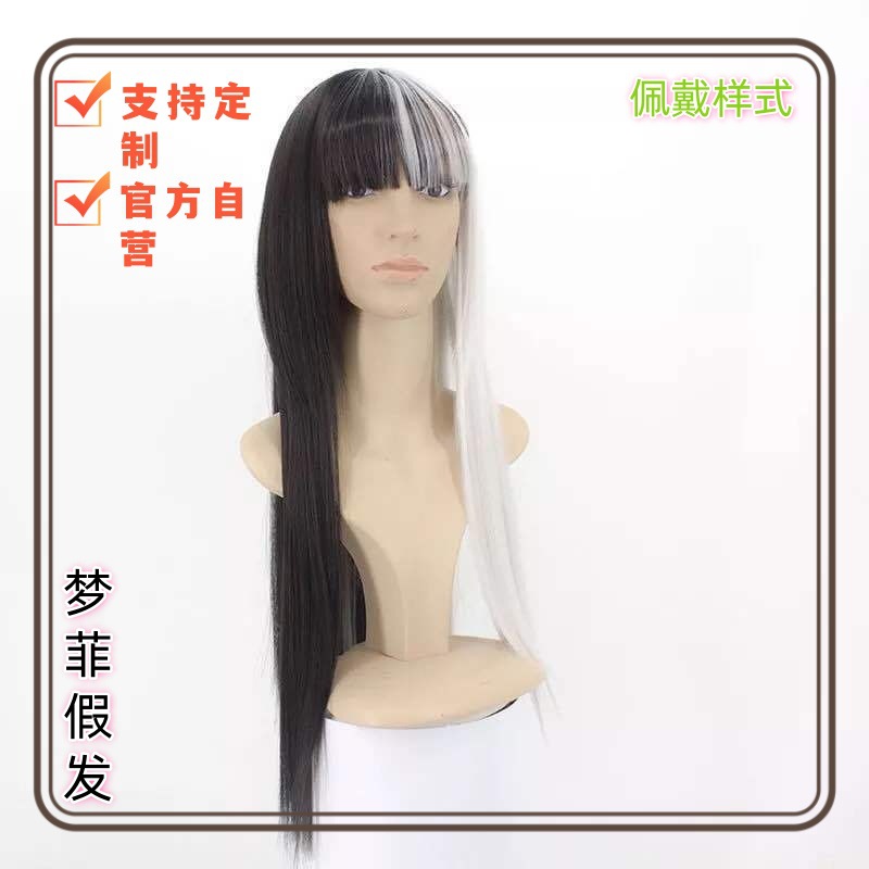 新しいかつらの女性の白黒の2色の長い髪のシミュレーションネットの赤い爆発のcosアニメのかつらの全髪の毛型のかつら