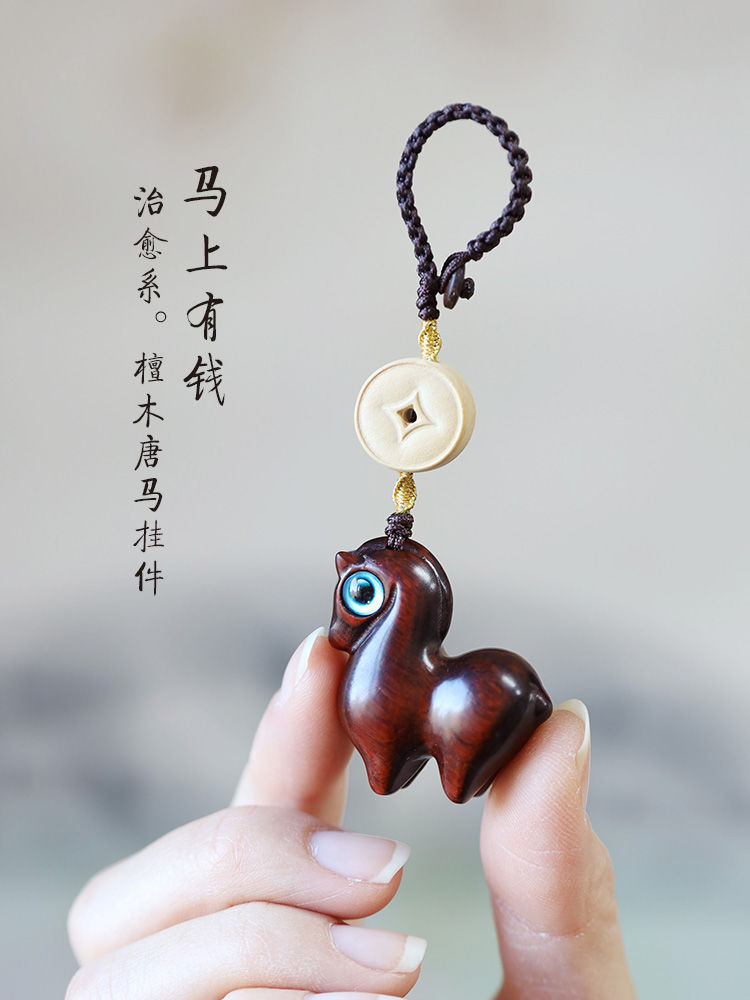 癒し系檀木生肖馬自動車キーホルダーペンダントかわいい小清新携帯電話ペンダント男女クリエイティブペンダント