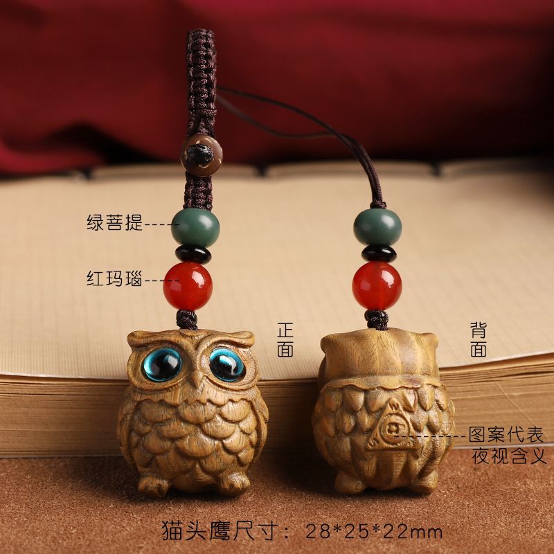 ネット赤緑檀木フクロウ自動車キーホルダー男女カップル鍵飾りチェーン創意リュックサックペンダント