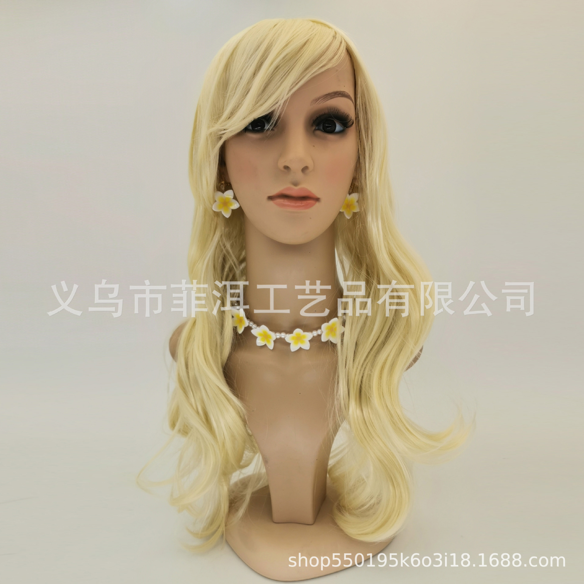 欧米の映画バービーbarbieの実写版のネックレスのイヤリングの金色の長いカールのかつら