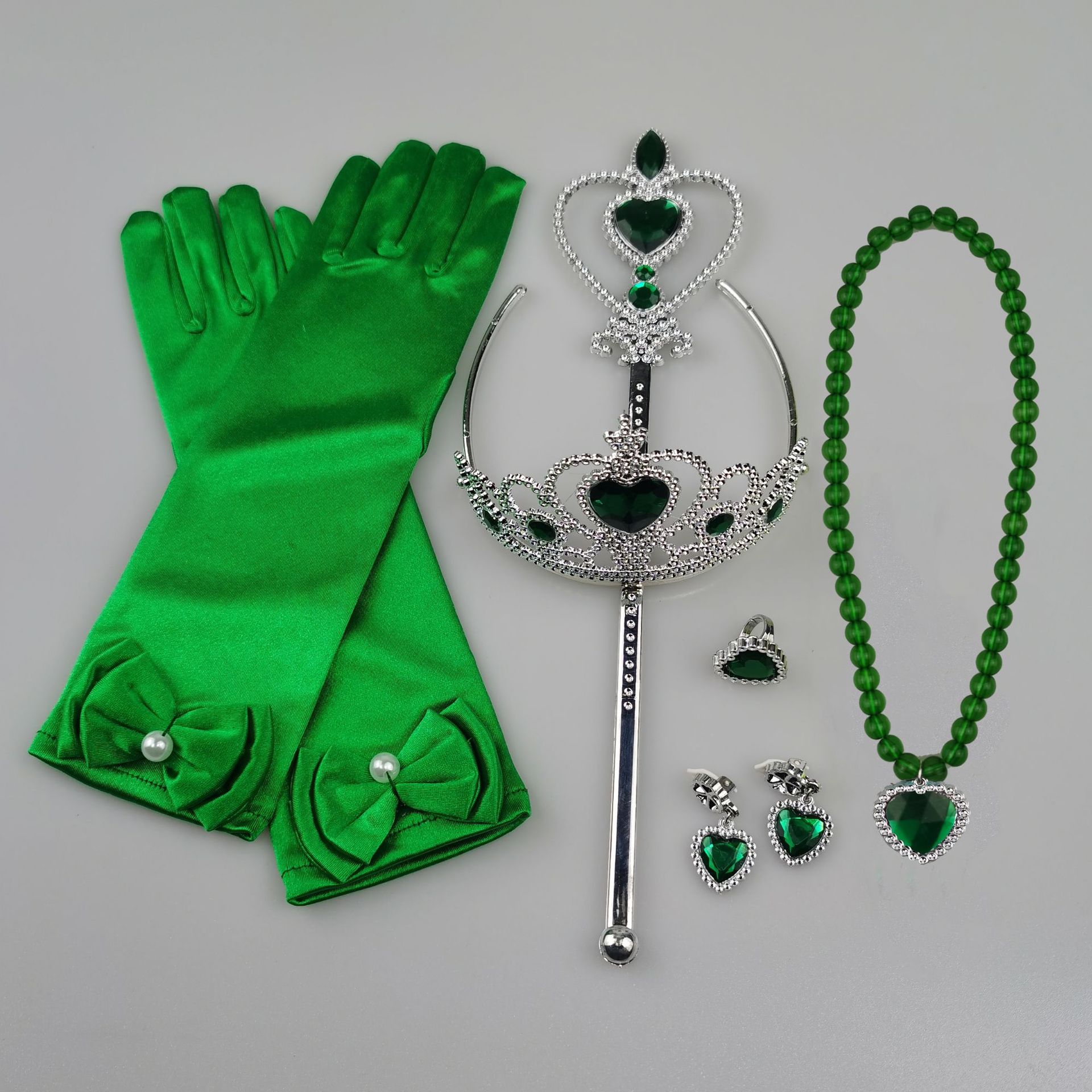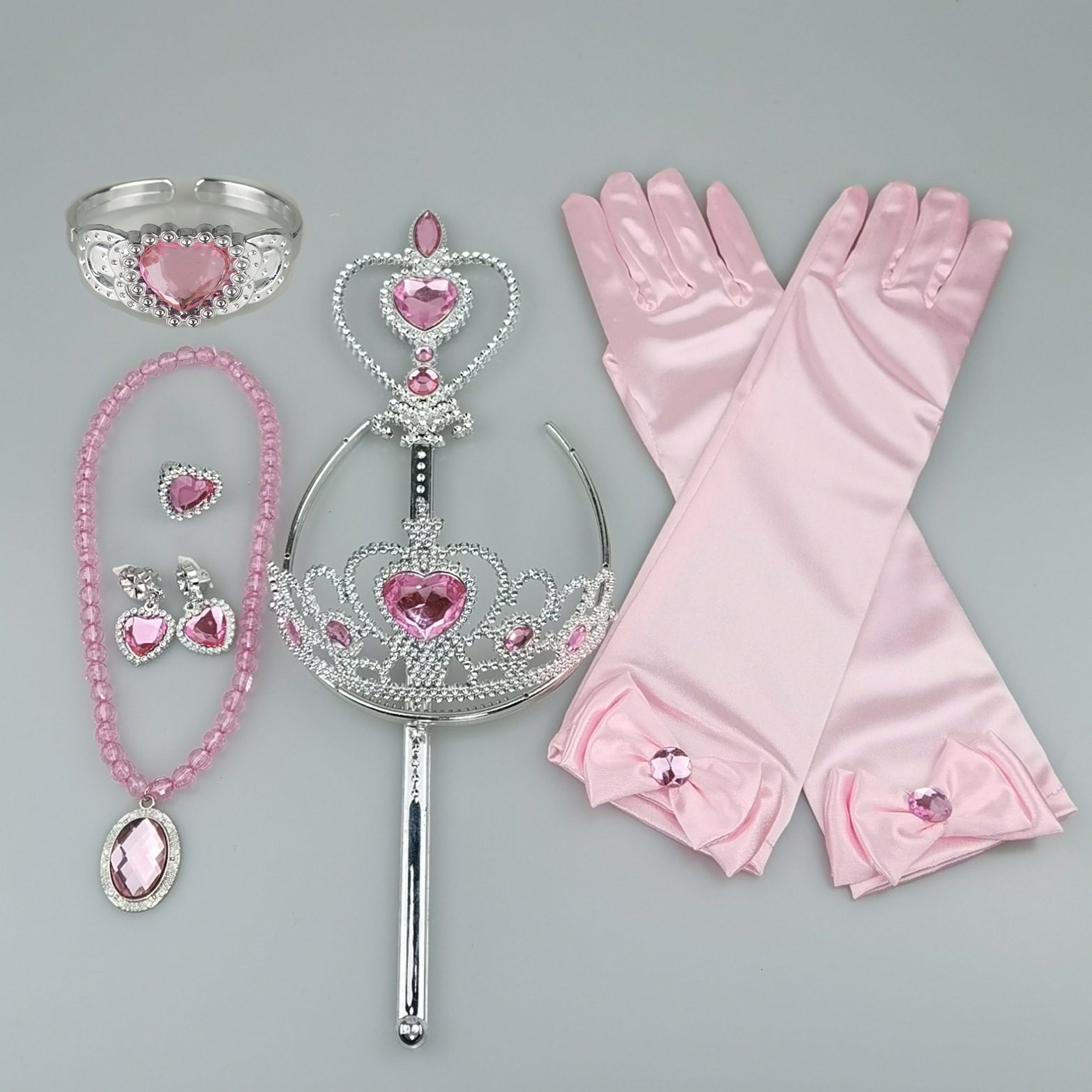 子供cosはアナと雪の女王の王女の6セットの王冠の魔法の棒のネックレスの手袋の指輪のイヤリングのセットを装います。