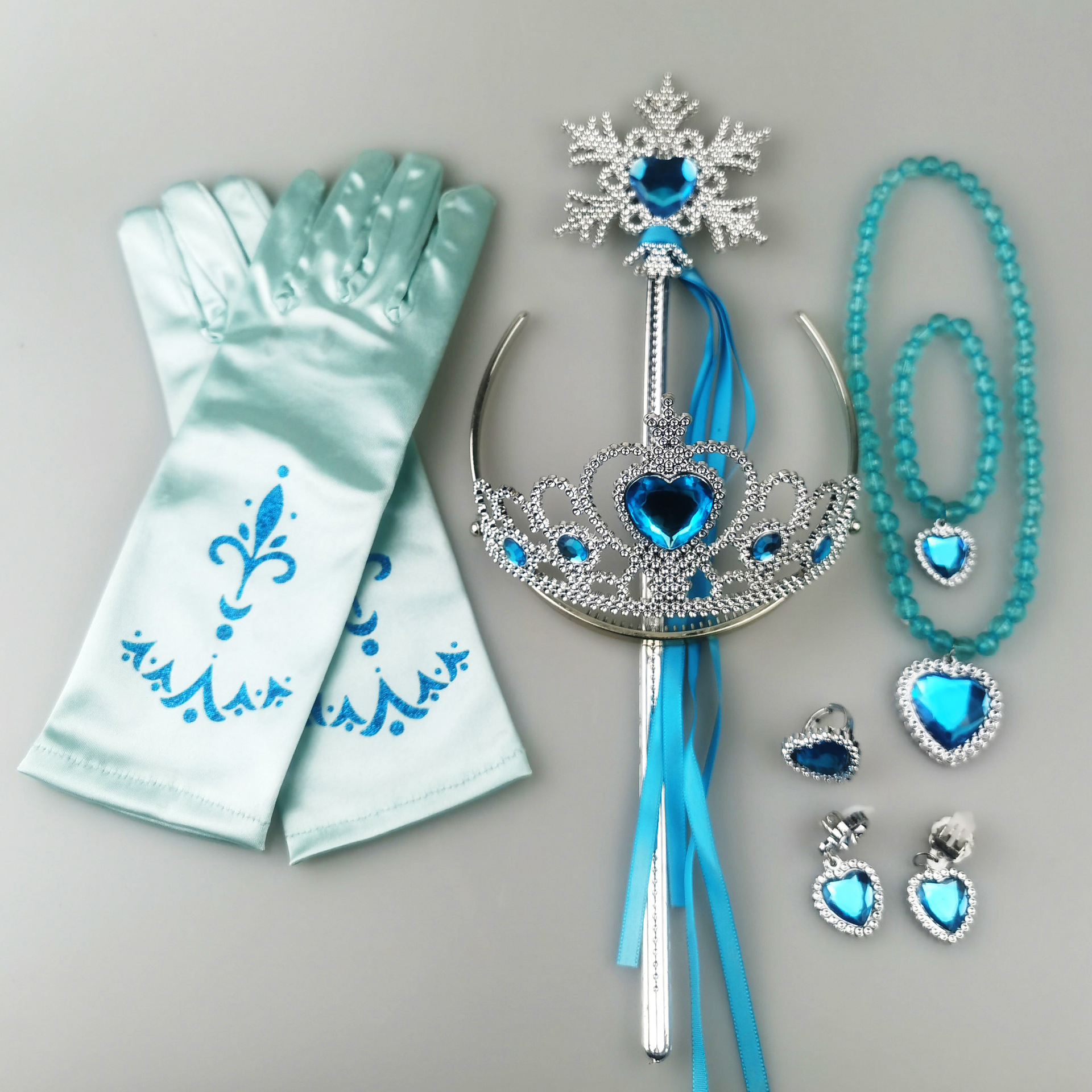アナと雪の女王欧米のパーティーは王女の6セットの指輪のイヤリングのネックレスの魔法の棒の手袋のクラウンのスーツを演じます。