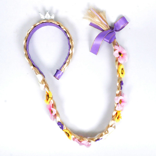 長い髪の王女の麻の花のお下げの髪のカチューシャのcosの髪のお下げの小さい花の髪飾りの王女の長いお下げの髪のカチューシャ