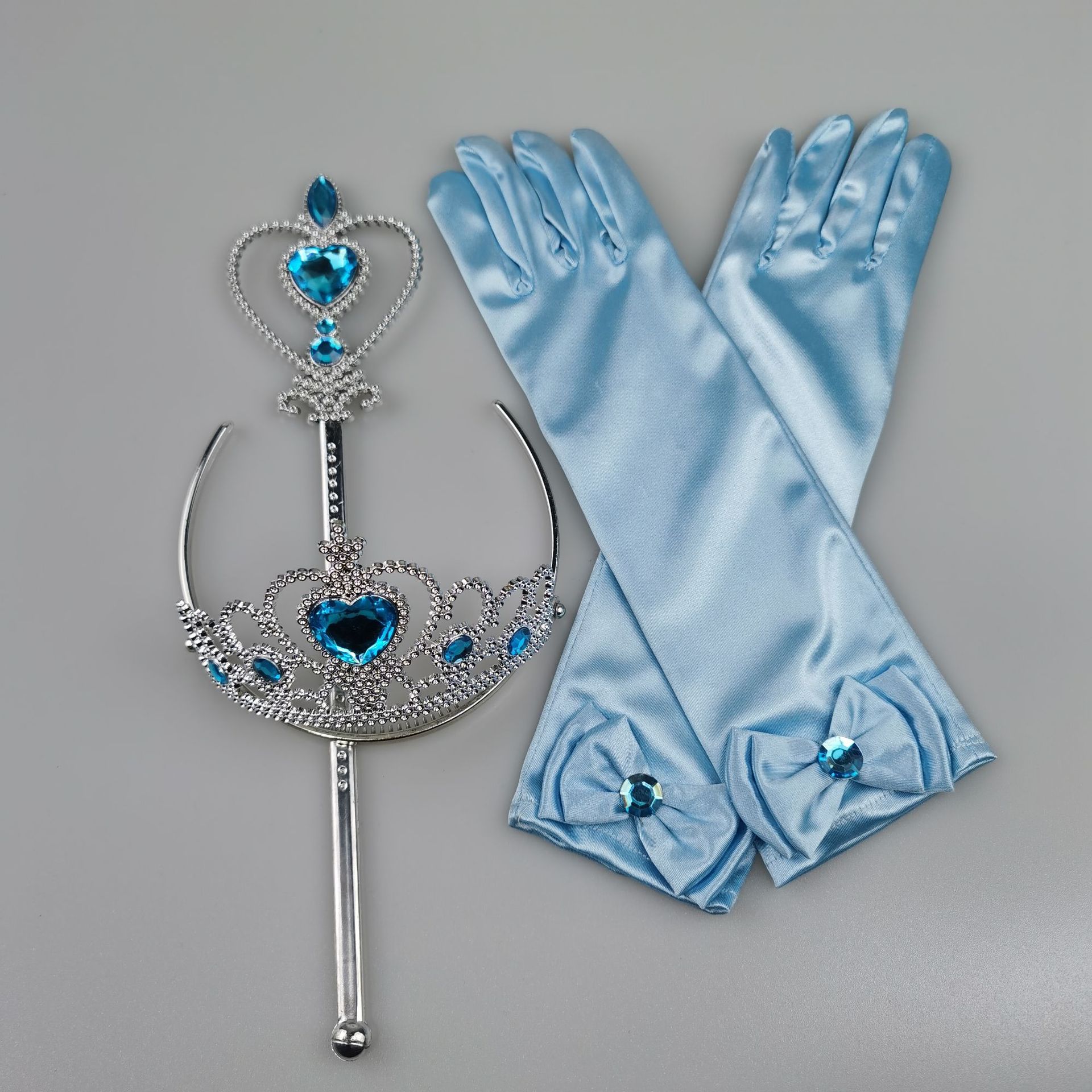欧米のアナと雪の女王の女の子の王女の魔法の棒の王女の魔法の棒のスーツの法棒の王冠の手袋の3つのセット