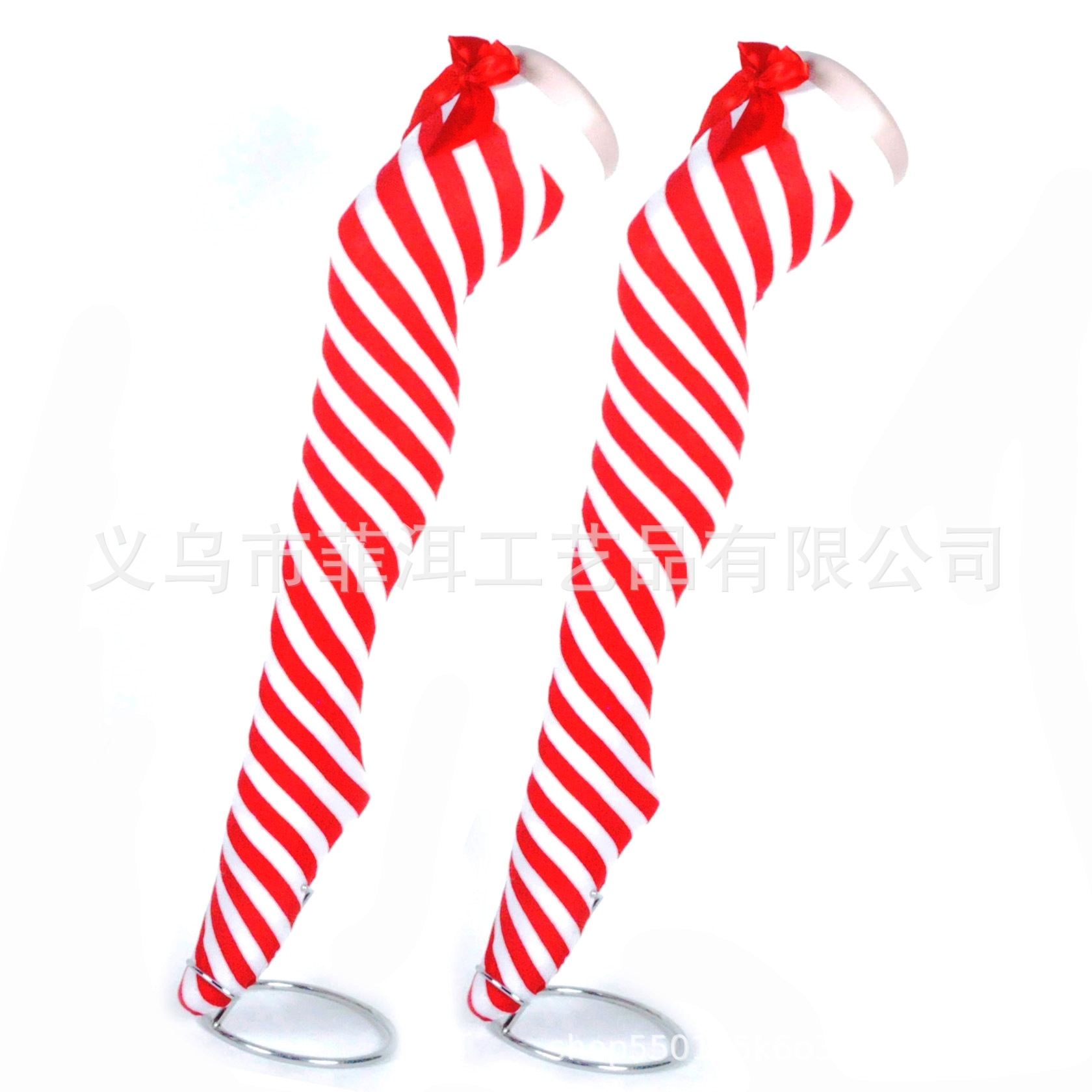 クリスマス赤と白の斜めのストライプの道化師の靴下の精霊の靴下の赤い大きい蝶結びの膝の長い筒の靴下