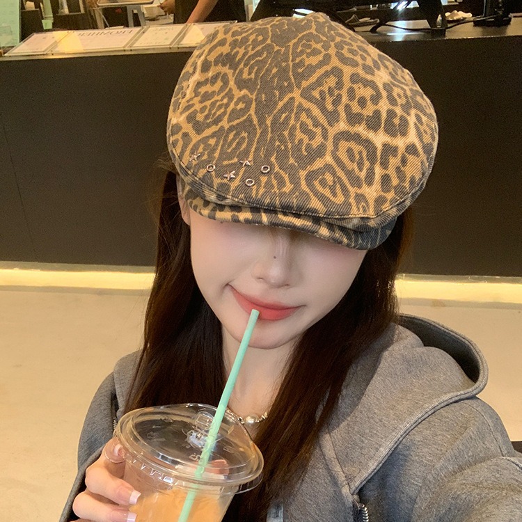 ミレニアムギャル五角星豹紋前進帽女大頭囲個性y 2k子供帽子大衆デザイン画家帽子