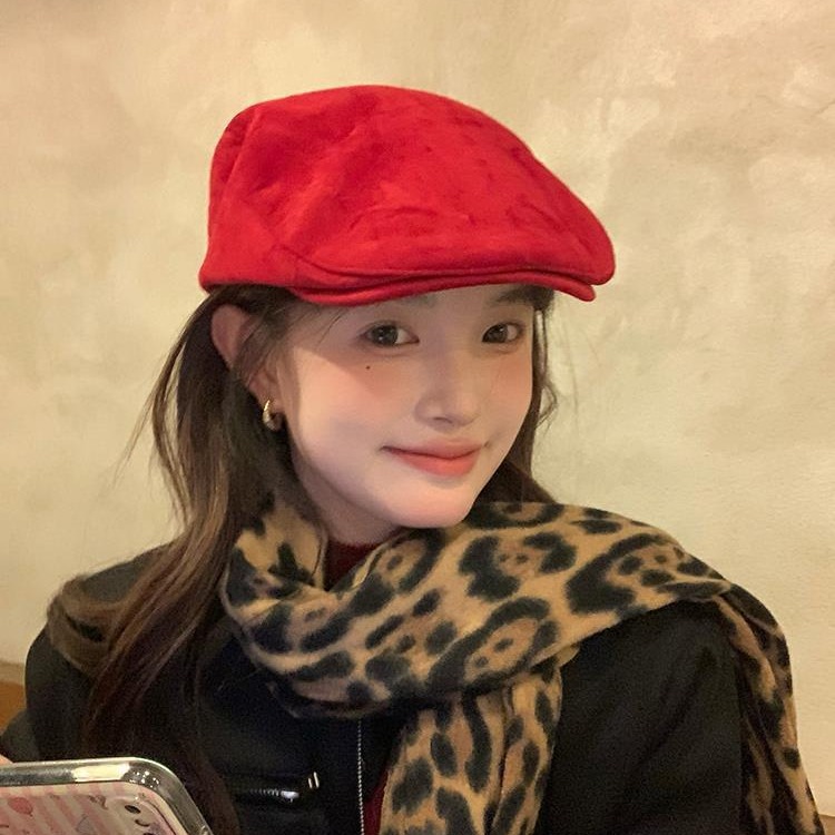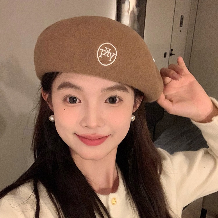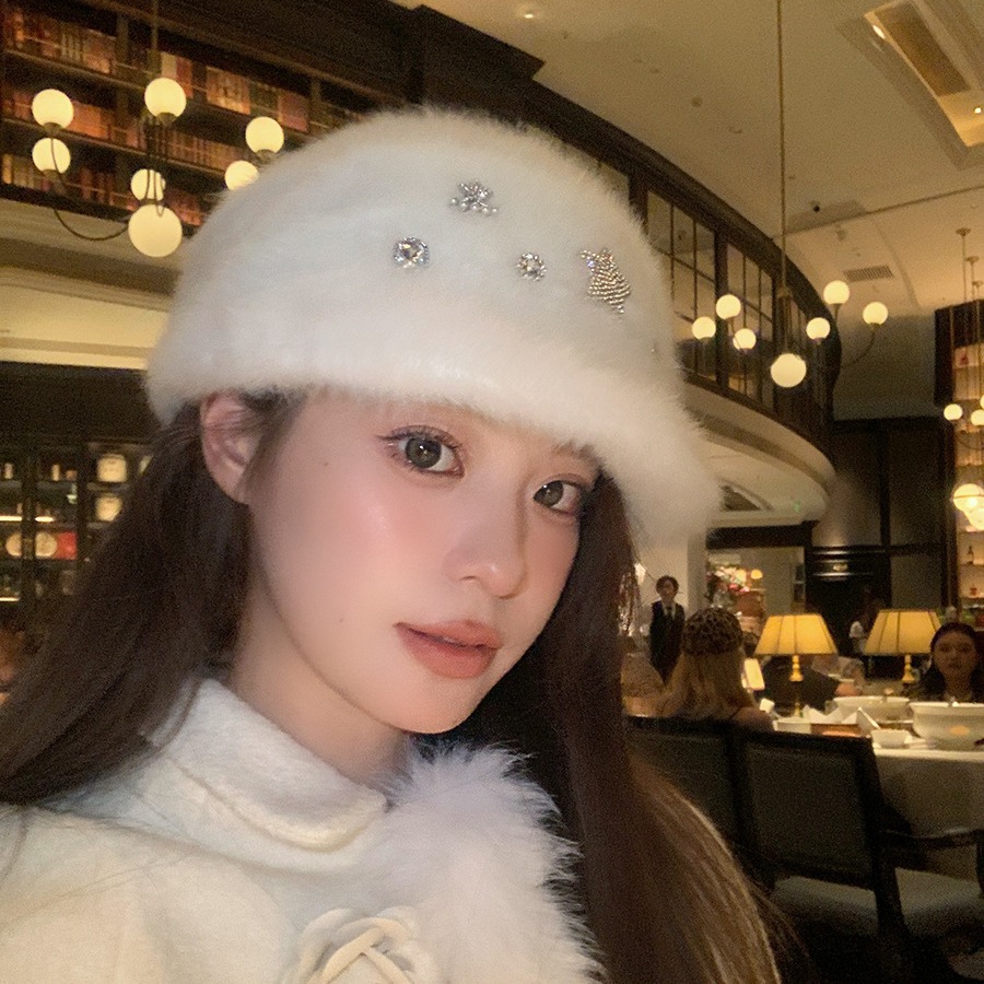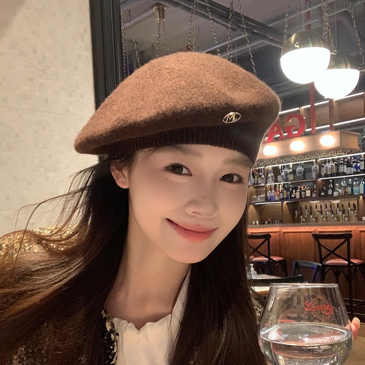 高品質ins気質秋冬帽子ぬいぐるみ帽子韓国馬術帽保温短つばドリルベレー帽女