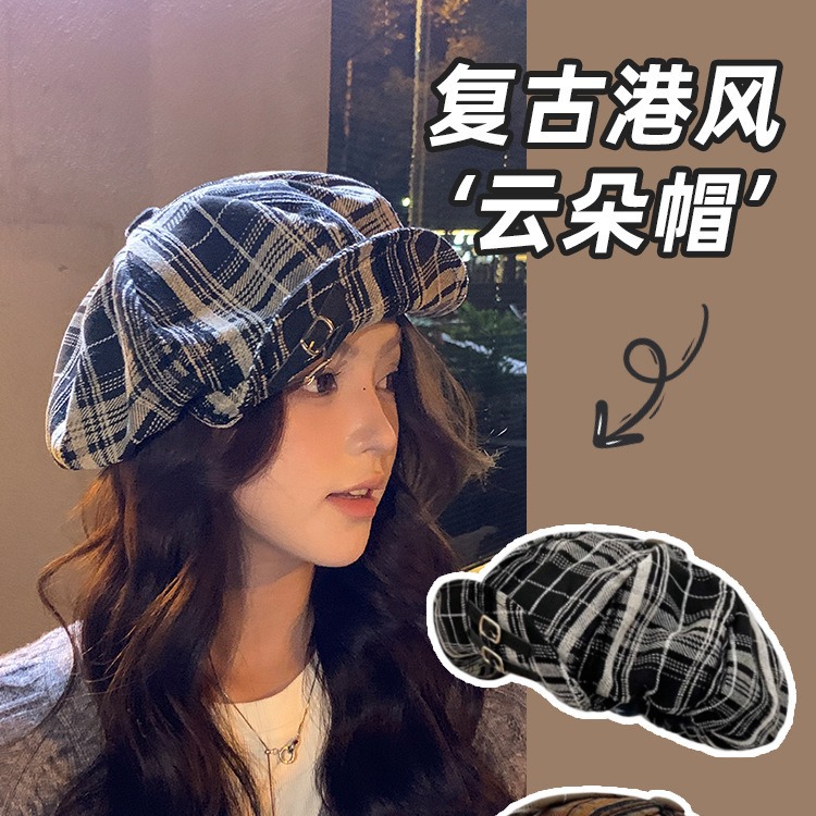 格子の雲のベレー帽の復古港風の大きい頭は春と秋に軒をひっくり返して顔を見せます。