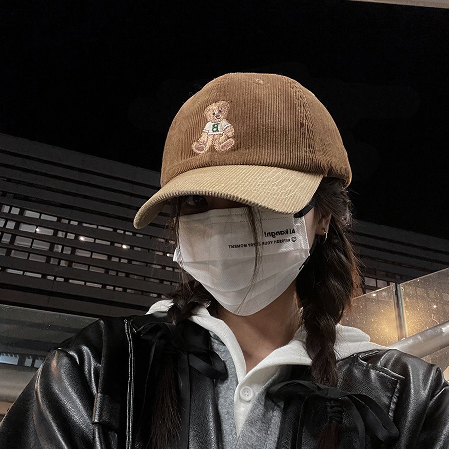 秋冬の新型コーデュロイ熊野球帽女性カジュアル百合顔小刺繍鴨舌帽子潮男カップル