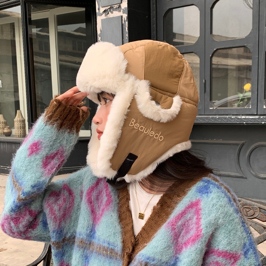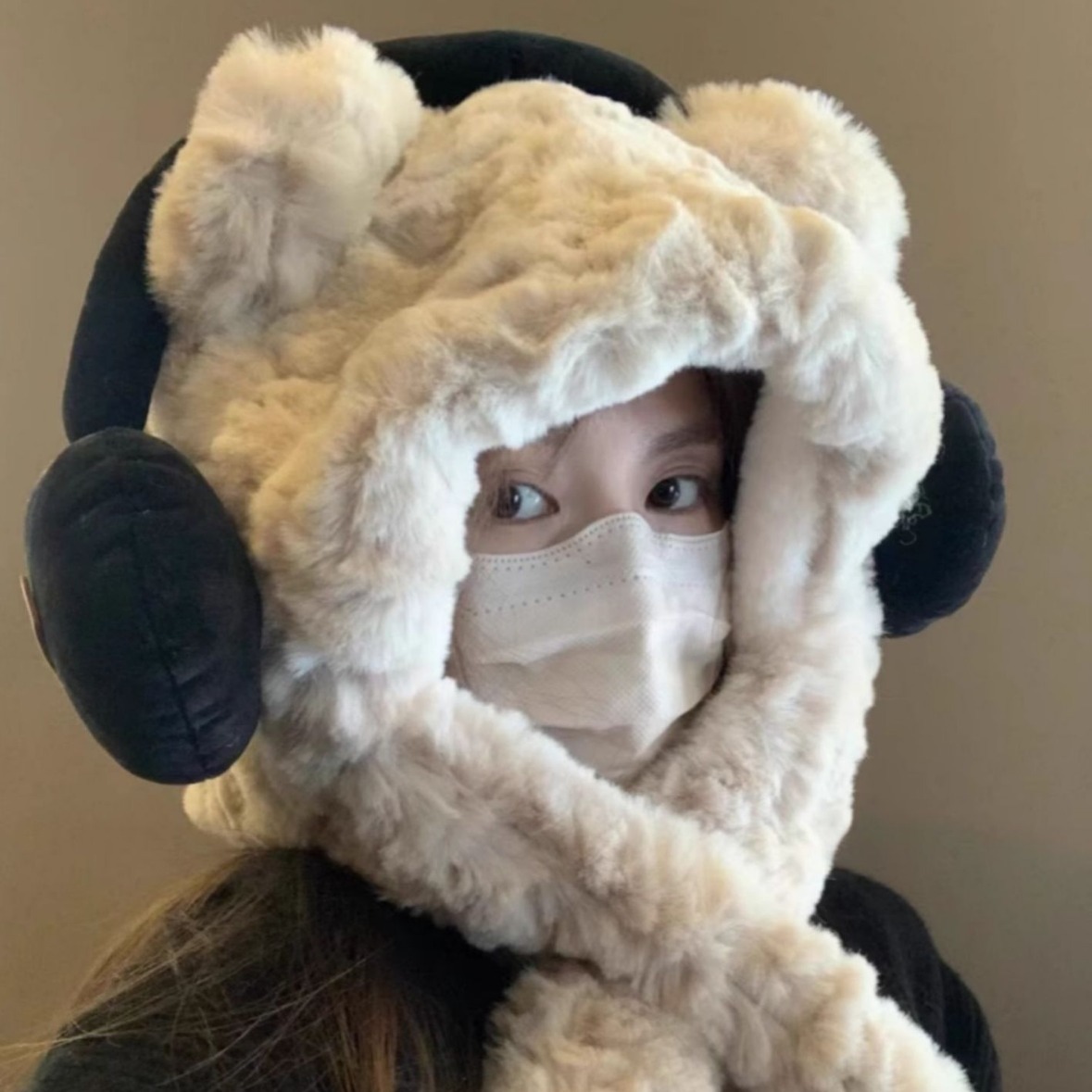 イヤホンをつけたベアー秋冬マフラー一体保温雷鋒帽東北スキージャケット