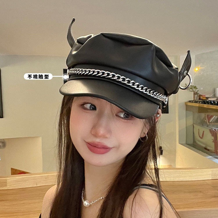 個性的な精霊の耳PUの皮の八角の帽子の女性の悪魔の角の海軍の風のベレーの帽子の英倫の復古の子供の帽子