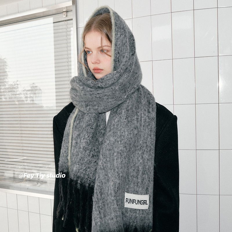 高級感馬海毛長条マフラー秋冬絨毛手触り欧米純色保温フリンジストールカップル
