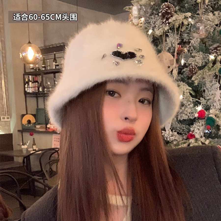 甘い水ドリルの白いウサギの毛のバケツの帽子の大きい頭の周りの秋冬のベルベットの漁師の帽子の子供は顔が小さくて厚い盆の帽子を見せます。