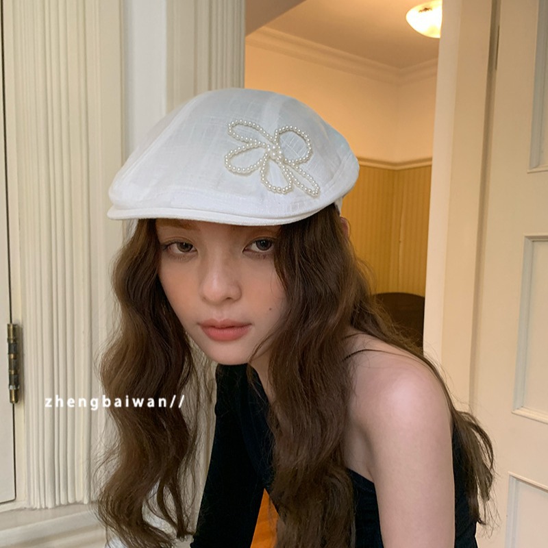日系文芸レトロギャル綿麻前進帽女性真珠花百合薄手新聞子供帽子潮卸売り