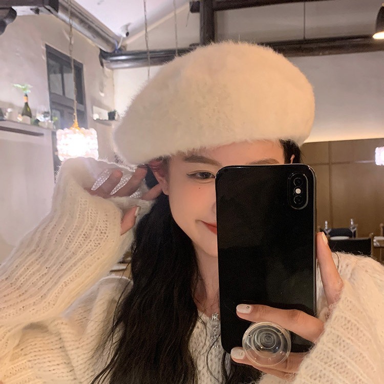 秋冬のカジュアルな百合の白いベレーの女性ins韓国版の画家の帽子は保温して甘い顔を見せます。