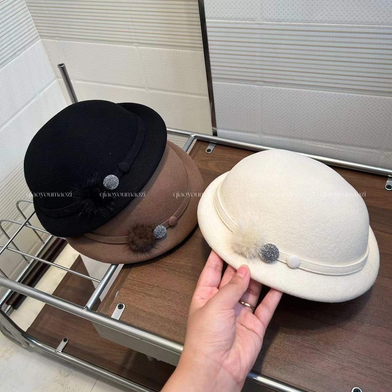 秋冬ウールの小礼帽英倫復古優雅な名媛小香風フェルト帽高級感保温盆帽女