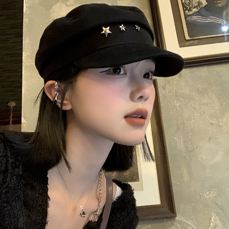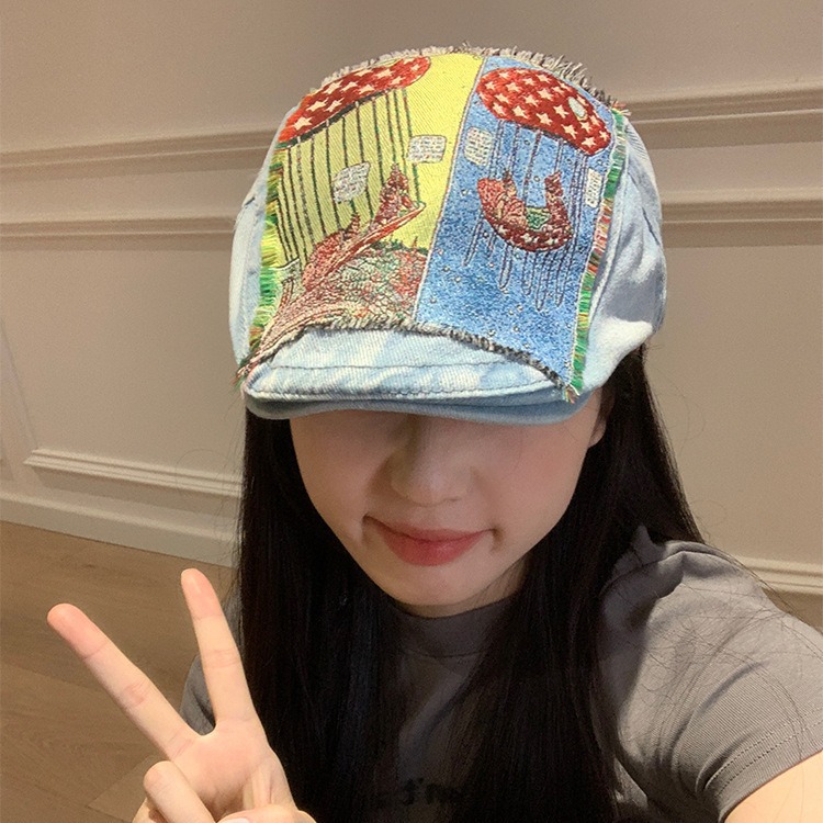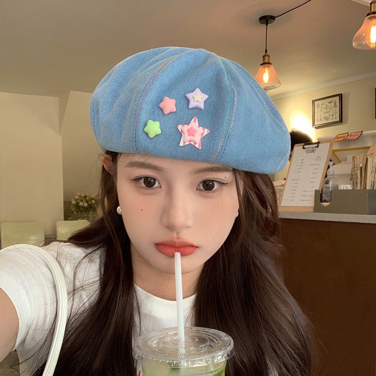 星の柔らかい頂y 2kの子供の帽子の百合のデニムのベレーの帽子の女性の春夏の韓国版の画家の帽子は顔の小さい雲の帽子を現します。